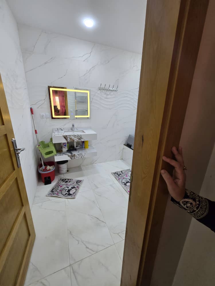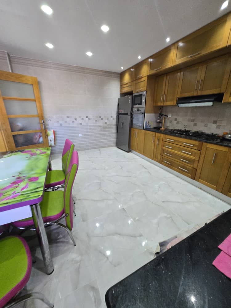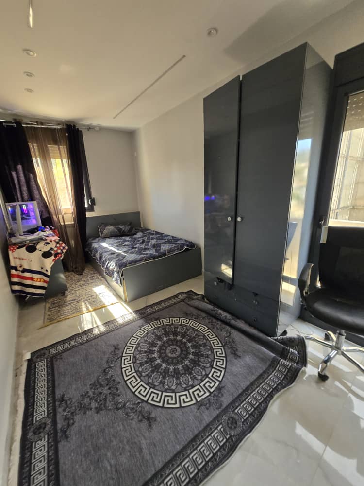 au étage pas trop élevé , bien aménagé à l'intérieure avec cuisine équipé, chauffage central, aéré et ensoleillé, bâche a eau, climatisation ,vue dégagé dans un endroit calme, familial et sécurisé,